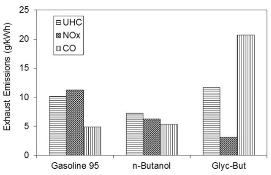 - To obtain knowledge on toxic emissions from the engine fueled glycerol–butanol blend. Hence, the tests were focused on exhaust gas toxic emissions as follows: NOx, CO, UHC, and smoke.