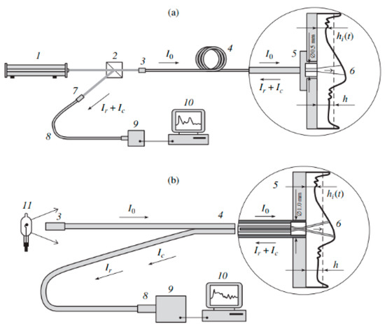 - Alekseenko, S.V.; Bobylev, A.V.; Evseev, A.R.; Karsten, V.M.; Markovich, D.M.; Tarasov, B.V. Measurements of the liquid-film thickness by a fiber-optic probe. Instrum. Exp. Tech. 2003, 46, 260–264. [Google Scholar] [CrossRef]