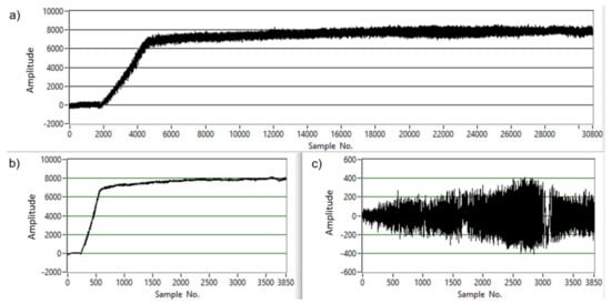 It was decided to use the number of times the three set thresholds were crossed (Count1, Count2, Count3) and the percentages of time over the three thresholds (Pulse1, Pulse2, Pulse3) as a feature. The individual thresholds: 1, 2, and 3 were set as 30%, 50%, 70%, respectively, of the signal’s maximum value during the first operation and were determined from previous studies to be uncorrelated with each other.