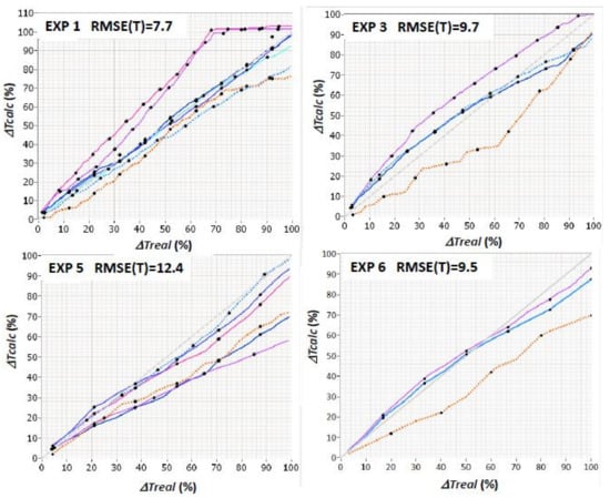 In order to determine whether a given feature is useful in the above-mentioned method of diagnostics of a tool condition, it is necessary to determine the effectiveness of the system (RMSE error) in the case of learning on a given feature. In the case of testing the effectiveness of a tool wear diagnostic algorithm, the experimental data should be divided into a learning set (used to build the model) and a testing set used to evaluate the effectiveness of the diagnostic algorithm. In order to exclude the influence of random uniqueness of the course of the feature in a single period of tool life, the testing of the system should be repeated many times using all possible combinations of dividing the data into a learning set and a testing set. Here, however, we do not want to test the effectiveness of the diagnostic algorithm but only the suitability of the feature for use by the algorithm. Taking advantage of the fact that in the case of this feature integration algorithm the generalization ability of the model is not adjusted in the learning process to determine the suitability of a given feature for estimation ΔT, A model of the feature was first determined using all the tool life periods and then the diagnostics were carried out on all the tool life periods using this model. The value of the estimation error thus obtained ΔT of the tool is denoted as RMSE(L) and forms the basis for the evaluation of the feature. The more useful a feature is for diagnosis, the more useful the estimation error ΔTcalc in relation to ΔTreal the actual one is smaller.