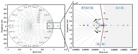 Figure 8 demonstrates the pole and zero traces resulting from the behavior of the MG system by varying the time delays with the presented study. Movement of system poles is captured by starting with time delay td = 0 and increasing it step by step to maximum time delay of td = 3 s. From Figure 8, poles are observed in the stable region for the time delay values 0 > td < 1 s and outside the unit circle for the td > 1 s which makes the MG system divergent and unstable.