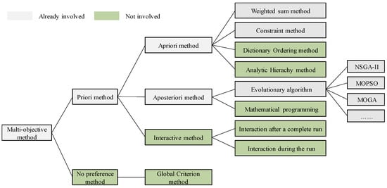 | Intelligent algorithm | ·could tackle the nonconvex problem ·Pareto is uniform | ·only include several objectives (<4) ·time consuming ·multiple adjustable parameters | Ns ≤ 3 | [44,102] |