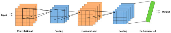 Unlike other neural networks, a CNN provides local connection, weight sharing, and pooling operation. These features can simplify the network structure by reducing the number of weights and the complexity of feature extraction. CNN structure consists of a convolution layer, a pooling layer, a full connection layer, and an output layer, as shown in Figure 1.