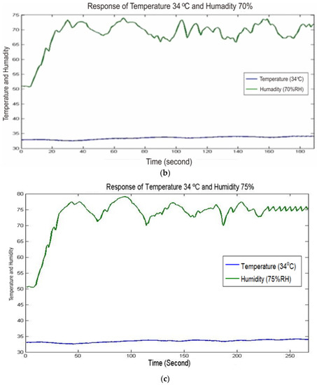 | Parameter | Temperature = 34 °C | Relative Humidity = 75% RH |