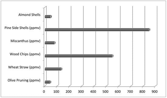 - Miranda, T.; Esteban, A.; Rojas, S.; Montero, I.; Ruiz, A. Combustion Analysis of Different Olive Residues. Int. J. Mol. Sci. 2008, 9, 512–525. [Google Scholar] [CrossRef]