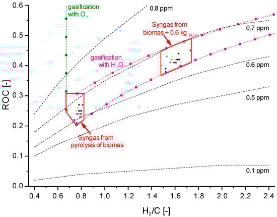 - Stemmler, M.; Müller, M. Theoretical Evaluation of Feedstock Gasification Using H2/C Ratio and ROC as Main Input Variables. Ind. Eng. Chem. Res. 2010, 49, 9230–9237. [Google Scholar] [CrossRef]
