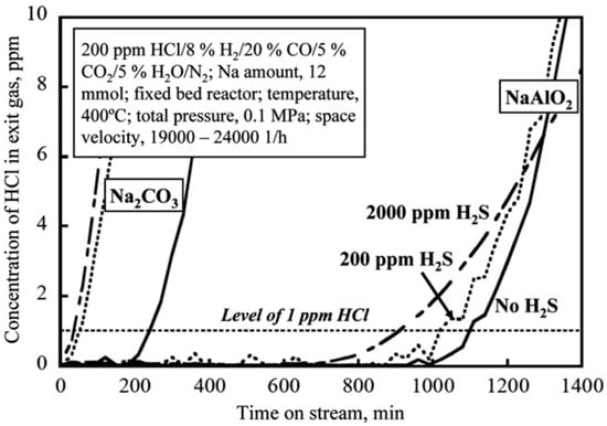 - Nunokawa, M.; Kobayashi, M.; Akiho, H. Development of Halide Removal Sorbent for Hot Gas Cleaning Technology. J. Soc. Powder Technol. Jpn. 2009, 46, 442–447. [Google Scholar] [CrossRef][Green Version]