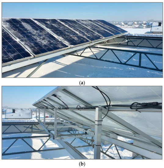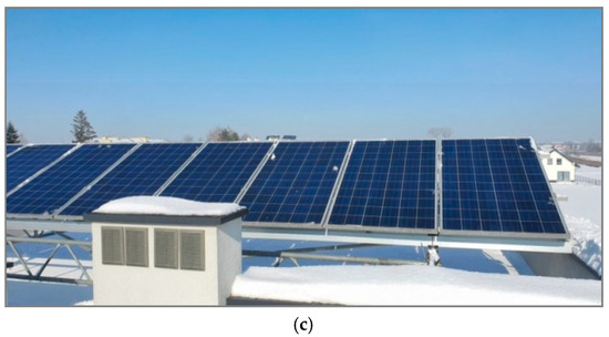 Photovoltaic installation on the building: (a–c) solar PV panels.