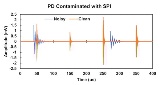 One point that remains unanswered is the denoising of SPI noise. Since the SPI noise occurs, due to power electronics firing, such as thyristors and rectifiers, it takes the shape of a pulse with similar properties to the PD signal. This proves challenging for the denoising techniques as stated above [27,28,29].