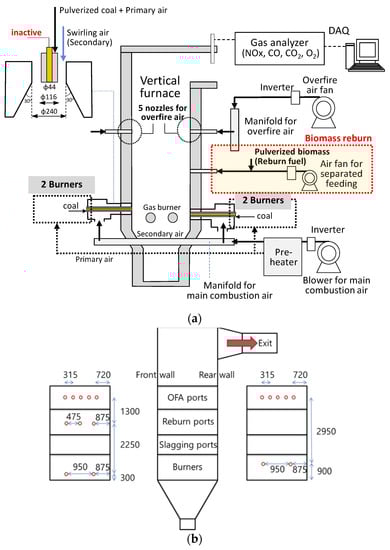 - Hodzic, N.; Kazagic, A.; Smajevic, I. Influence of multiple air staging and reburning on NOx emissions during co-firing of low rank brown coal with woody biomass and natural gas. Appl. Energy 2016, 168, 38–47. [Google Scholar] [CrossRef]