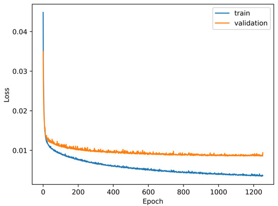 Figure 7 shows a model training process. In the figure, after 1200 training epochs, the validation performance does not improve, but the training error continues to decrease. The model should stop training around 1200 epochs to avoid overfitting.