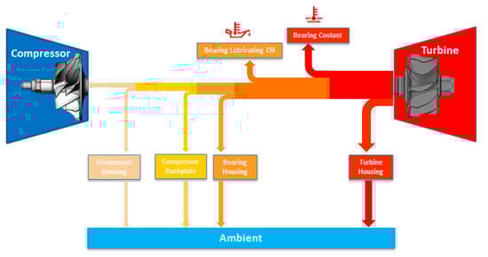 As mentioned earlier, the conventional turbocharger measurement SAE standard suggests a turbine inlet temperature of 600 °C while simultaneously assuming adiabatic conditions. It turns out that neglecting the effects of heat transfer in a turbocharger and assuming it as an adiabatic component would be insufficient for providing a deep understanding of aerothermodynamic effects on the turbocharger performance. Therefore, methods for measuring, modeling and determining the heat transfer in turbochargers have always presented a challenge in terms of the development and accurate prediction of turbocharger performance.