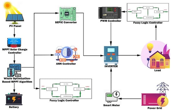 Bonsignore et al. [5] presented the Photovoltaic Systems (PVS) defect detection process. This solution is measured using a neuro-Fuzzy method to measure the parameter sets of a PV module under different operating conditions. Chen et al. [6] identified disruption events on the micro-distribution network, and suggest using the fractional-order dynamic-error-based fuzzy Petri net (FPN). The conversion of photovoltaic energy relies on solar radiation and temperature, and uses the optimum monitoring power point regulation for reliable power generation and stress at micro-distribution lots. Only a bisection-based technique monitors the PVECS voltage by changing the buck–boost converter job ratios when the required peak voltage is calculated. The maximum power drops are used to identify faults on the DC side relative to smart metering equipment. The RF-based diagnostic models suggested take the fault features of the PV arrays which do not apply to the environment conditions, only the real-time activity voltage and string currents (Chen et al. [7]). In order to simplify the RF function parameters by the minimizing calculation of out-of-bag errors, a grid-search approach is often used to enhance the process of error diagnosis. Due to the non-linear performance characteristics and various PV arrays, various fault-diagnostic methods centered on machine learning were suggested by Chen et al. [8]. Nevertheless, several problems remain: the efficiency of fault diagnostics is still restricted because of inadequate information; fault diagnostic models are not successful for training and updating; fault data samples identified by field experiments are difficult to achieve.