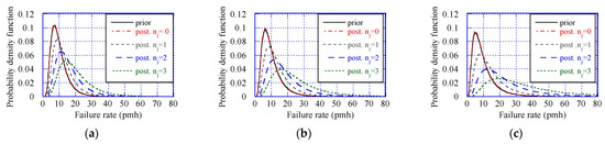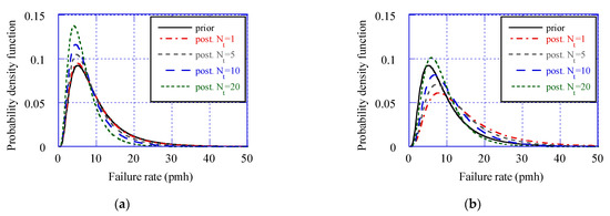 The latter can be calculated numerically. It is worth to note that Equation (7) represents the probability density function of the failure rate; hence, after π (λ) has been obtained, statistical characteristics of the failure rate (e.g., mean, variance, lower and upper confidence limits) can easily be calculated numerically in accordance with their definitions.