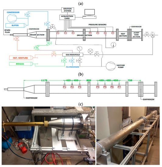- Wahid, M.A.; Ujir, H.; Saqr, K.M.; Sies, M.M. Experimental Study of Confined Biogas Pulse Detonation Combustion. In Proceedings of the 2nd International Meeting on Advances in Thermo-Fluids, Barcelona, Spain, 15–17 July 2009; pp. 71–77. [Google Scholar]