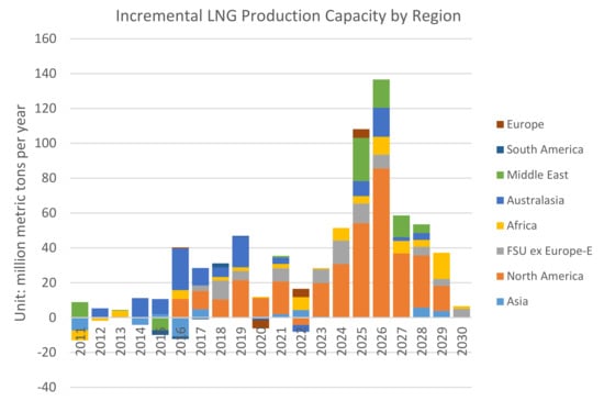 - Arora, V.; Cai, Y.U.S. Natural gas exports and their global impacts. Appl. Energy 2014, 120, 95–103. [Google Scholar] [CrossRef] [Green Version]