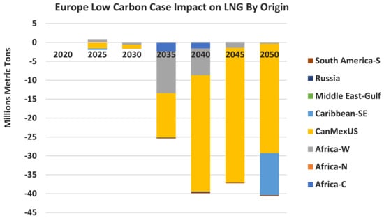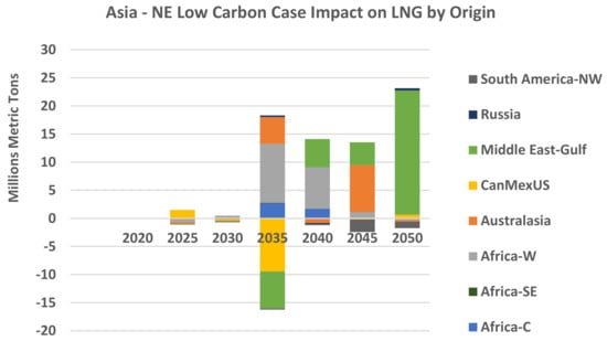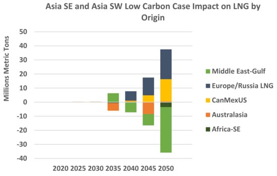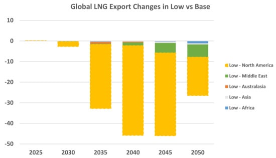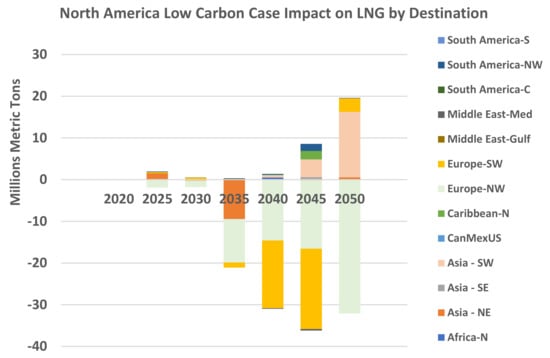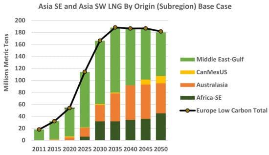 Lastly, similar to past research, this paper also illustrates the value of structural modeling through a meaningful market scenario. It is worth noting that this current study expands the body of knowledge on using a structural model for real decisions with robust methodology and sufficient data in two specific aspects. Unlike a regionally focused study, like past research, it has provided a complete global scenario of LNG trade through 2050. Furthermore, this paper discusses the value of using scenario planning of a structural model to provide insights under a regime switch—an energy transition to a low-carbon economy.