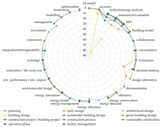 The thesaurus consisted of 326 merged and excluded keywords and can be found here at https://github.com/DianaKalibatiene/BIM_Energy (accessed on 12 September 2021). Finally, the keywords that appeared to be the most relevant and most interesting were selected for in-depth analysis (see Section 4). The thesaurus was developed by the third author and checked for correctness by the other authors.