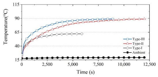 Figure 15 shows that all saturation temperatures are thermally stable because they are below the temperature limit of 100 °C, which was predicted in the thermal analysis (see Table 8). Table 8 compares the average value of the temperature distribution of the coil in the thermal analysis and the measured value at any point of the coil ad it shows that the analysis results are relatively correct.