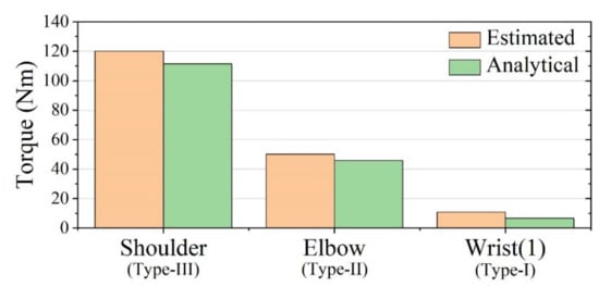 A comparison of the experimentally estimated value and the analytically derived value for the maximum torque of each smart actuator showed that both values were approximately close for all joints as shown in Figure 18.