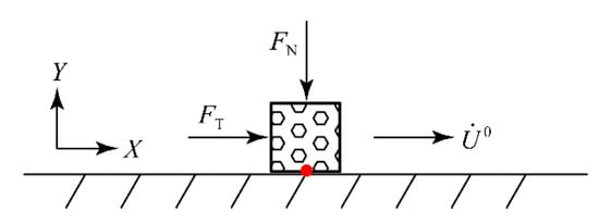 In the sliding contact state, the bond properties of the contact interface are destroyed, and there is relative sliding. This state is a sliding friction state, so Equations (5) and (7) constitute the contact conditions. At this point, the tangential contact force should be calculated according to the dynamic friction law: