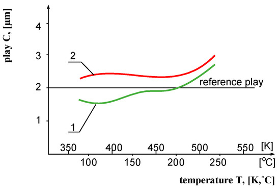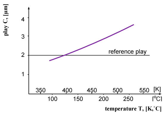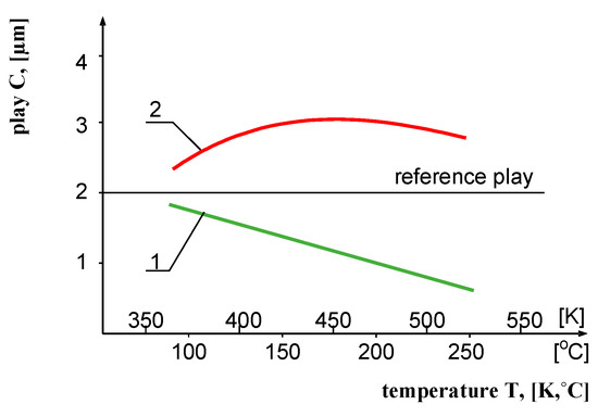 The results obtained prove that monitoring the thermal expansion of materials as early as at the production stage makes it possible to check their quality—this is extremely important, considering the materials from which precision pairs of needle are made. This fact is illustrated in Figure 6, Figure 7 and Figure 8, which show the variation of the degree of play in precision pairs as a function of operating temperature. These diagrams indicate that the dilatation properties of the precision pairs must also be taken into account when selecting materials for precision pairs.