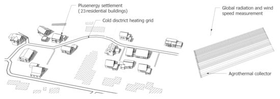 - Brennenstuhl, M.; Zeh, R.; Otto, R.; Pesch, R.; Stockinger, V.; Pietruschka, D. Report on a Plus-Energy District with Low- Temperature DHC Network, Novel Agrothermal Heat Source, and Applied Demand Response. Appl. Sci. 2019, 9, 5059. [Google Scholar] [CrossRef] [Green Version]