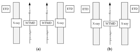 During the real system investigation, different states were defined for the devices used in the security screening. The X-ray may be in a waiting state for inspection when no further objects are transferred to the device and it is already available. The power consumption of the device in this state is indicated as PXi. When moving items to and from the X-ray when the X-ray is not screening, the current consumption is indicated as PXm. The last state of the X-ray machine indicates that objects are being x-rayed. The current consumption is indicated as PXs. The power consumption of the WTMD is independent of the idle or screening state. Thus, only one state is defined, and its current consumption is denoted as PW. The next device with power consumption is the ETD. Here the difference is again significant depending on the state of the device. In the idle state, the current consumption of the ETD will be as PEi. In the overexposed state, the current consumption of the ETD will be as PEs.