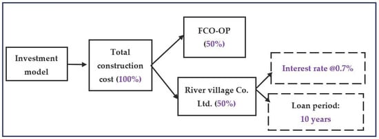 The total construction cost of this project was USD 206,200, which is approximately USD 17,180/kW. Figure 4 shows the investment model of Shiraito (Step3) SHP. The FCOOP and Rivi had each invested 50% of the funding of the LLP. The FCOOP invested its own money and Rivi borrowed the money from a bank for the period of 10 years at an interest rate of 0.7%.