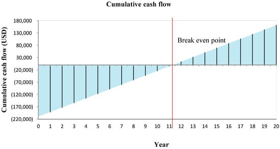 During the planning of this case, a cash flow analysis was done to check the project’s economic viability. The result of cash flow analysis is shown in below and in Figure 5. In Japan, if the IRR of a SHP project is greater than 5%, it is assumed that it will be beneficial. Since, an IRR of 6% was calculated for Shiraito (Step3) SHP, it was assumed to be beneficial. It is found from the cumulative cash flow graph that the breakeven point will be achieved in approximately 11.5 years.