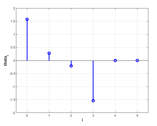 Adopting α = 0.2 , the robust stability condition given by Equation (19) is checked based on the representation in Figure 13 of the functions 1 α l ¯ m ( ω ) and P ¯ ( e j ω , θ ) * Q ¯ ( e j ω , θ * ) .
