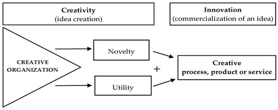 According to the Sternberg’s investment theory, creativity is a confluence of six distinct but interrelated resources: intellectual abilities, knowledge, styles of thinking, personality, motivation, and environment [32]. Therefore, when applying existing values, creativity may be considered the most effective method of adding value. This approach to creativity is particularly important when discussed in the context of organizations, as it means being able to do something new and useful (Figure 1) [33].