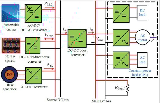 - Karami, Z.; Shafiee, Q.; Sahoo, S.; Yaribeygi, M.; Bevrani, H.; Dragicevic, T. Hybrid Model Predictive Control of DC–DC Boost Converters With Constant Power Load. IEEE Trans. Energy Convers. 2020, 36, 1347–1356. [Google Scholar] [CrossRef]