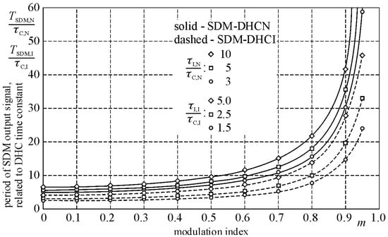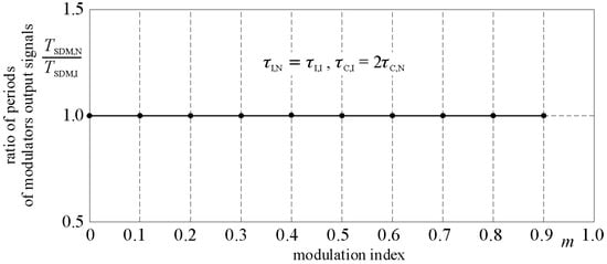 Figure 4 shows that the changes in the values of the carrier periods vs. the modulation index are proportionally the same for both types of SDM.