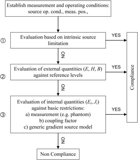 - IEC 62311. Assessment of Electronic and Electrical Equipment Related to Human Exposure Restrictions for Electromagnetic Fields (0 Hz to 300 GHz); IEC: Geneva, Switzerland, 2019. [Google Scholar]