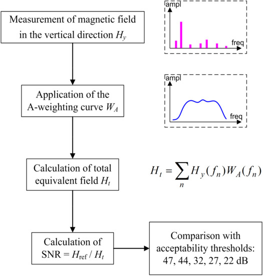 - Bellan, D.; Gaggelli, A.; Maradei, F.; Mariscotti, A.; Pignari, S. Time-Domain Measurement and Spectral Analysis of Nonstationary Low-Frequency Magnetic-Field Emissions on Board of Rolling Stock. IEEE Trans. Electromagn. Compat. 2004, 46, 12–23. [Google Scholar] [CrossRef]