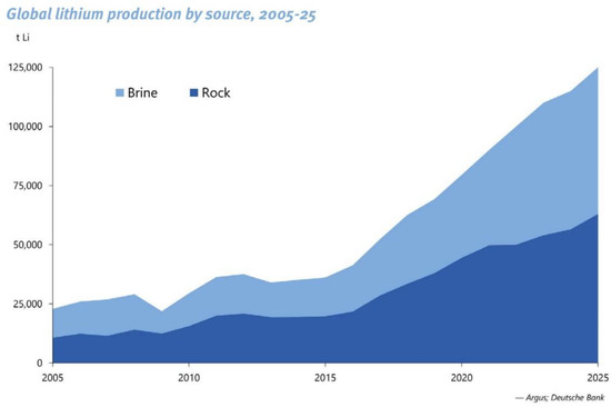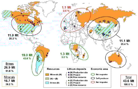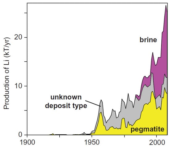- Kesler, S.E.; Gruber, P.W.; Medina, P.A.; Keoleian, G.A.; Everson, M.P.; Wallington, T.J. Global lithium resources: Relative importance of pegmatite, brine and other deposits. Ore Geol. Rev. 2012, 48, 55–69. [Google Scholar] [CrossRef]