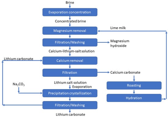 - Li, Z.; Binnemans, K. Selective removal of magnesium from lithium-rich brine for lithium purification by synergic solvent extraction using beta-diketones and Cyanex 923. AIChE J. 2020, 66, e16246. [Google Scholar] [CrossRef]