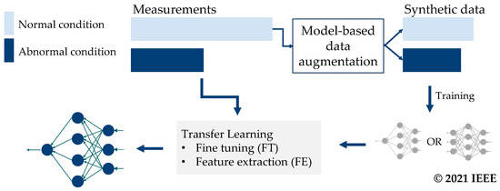 The un-augmented training data consists of normal- and abnormal-condition measurements. Therefore, the model-based data augmentation can be used to generate and augment normal and abnormal conditions or to only augment abnormal conditions [