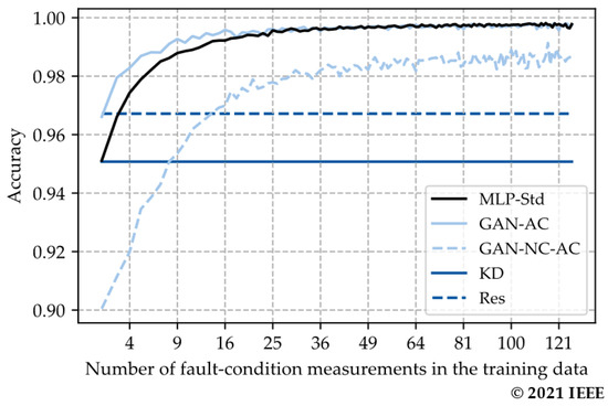cDA between the number of synthetic data and measurements can be adjusted with Equations (2) and (3). The MLP is trained with the union of the synthetic normal- and abnormal-condition data and the measurements. Such diagnostic systems are denoted by