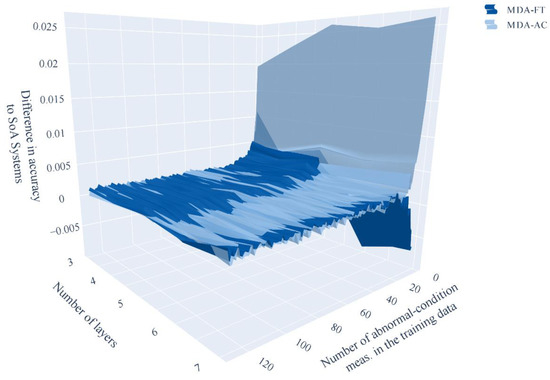 SoA Systems, on average 0.61%. For >14 abnormal-condition measurements in the training data, the accuracy difference compared to the