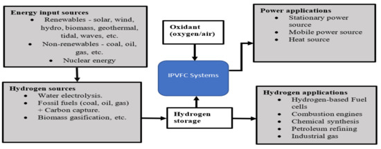 The resurgence in the research and development of IPVFC systems is not unconnected with the intensified efforts to decarbonize all sectors of the economy including the power generation and the transport sectors that contribute a significant portion of GHGs emissions [113]. In the coming decades, IPVFC systems will be applied as power and hydrogen sources since they are suitable as ideal future energy systems that should meet health, environmental, and techno-economic feasibility. Futuristically, IPVFC systems can be used: