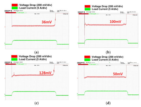 According to the load current condition, the voltage drop between electrodes converged with a different voltage level during 13,000 repetitive operations. In other words, the voltage drop of the electrodes operating under 400 V/5 A load conditions converged to 80 mV, while the voltage drop of the electrode operating under 400 V/10 A load conditions converged to 140 mV, which is almost doubled.