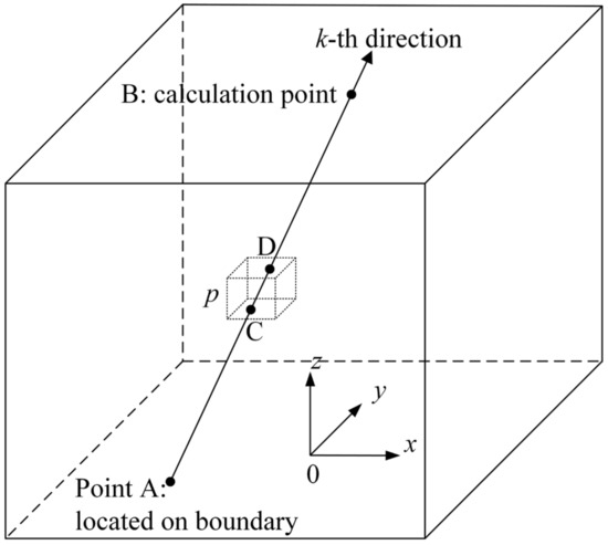where s is the geometric length. If source function Sk, k = 1,2,…, M is known, Equation (9) can be solved by direct piecewise integration. Take the k-th new direction at point B and the control volume p for example, as shown in Figure 2, the ray AB intersects the control volume p at the line segment CD, then the integral form of Equation (9) along CD can be given as