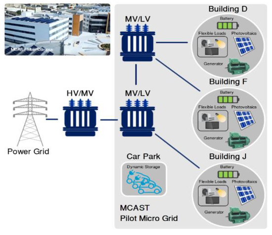 - Azzopardi, B.; Azzopardi, S.; Bartolo, B.; Jately, V.; Mikalauskine, R.; Bhattacharya, S.; Khalifeh, A.; Hadjidemetriou, L.; Tsolakis, A.; Martinez-Ramos, J.L.; et al. Micro-Grid Campus Concept from Data to Design: Case Study Malta. In Proceedings of the 2020 47th IEEE Photovoltaic Specialists Conference (PVSC), Calgary, AB, Canada, 15 June–21 August 2020; pp. 2001–2004. [Google Scholar]