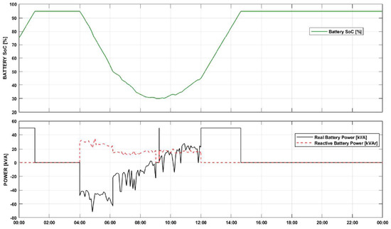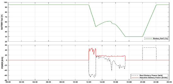 The values of all micro-grid system components and their various parameters are obtained from smart meters. Since these components are considered non-ideal to emulate the micro-grid’s real-time behavior, both active and reactive power values are utilized within the simulation study. The initial capacity of the DERs within the micro-grid is evaluated using the equations mentioned in Section 3.3 and is implemented in the simulation framework to analyze the performance of the current micro-grid. The initial capacity is then updated to obtain the optimum battery capacity while increasing the reliability of the micro-grid and minimizing the initial cost of the system. The grid is considered as an ideal source with 400 V, 50 Hz as supplied by Enemalta PLC, the sole energy supplier in Malta.