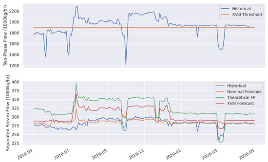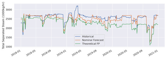 | Total Separated Steam (1000 kg/h) | Nominal Forecast | 133 | 5.2 | −76.8 | −3.0 |