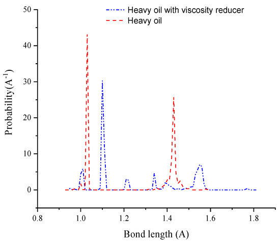 Distribution of the length of hydrogen bond in heavy oil and heavy oil with viscosity reducer.