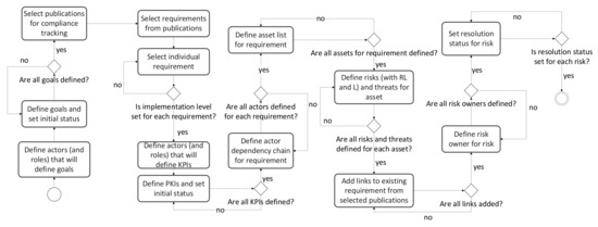 When we observe all entities that were described in previous sections, our interpretation of their purpose in the model gives us the framework—the prism or new point of view—for the requirement interpretation and enrichment with necessary information. All these components the model is composed of can provide a solid basis for requirement implementation tracking. With adequately defined KPIs, data extracted from model instances can provide sufficient information about the status of implementation such as the number or percentage of fulfilled requirements, their implementation priority, risks accepted or mitigated, and actors involved. In addition, the model is compatible with the OSCAL document format for requirements exchange, that is, even if it is in the early stage of development, projected to be de facto standard and thus the model can be ready for its early adoption. Applications built upon this model can use OSCAL documents as an exchange data format.