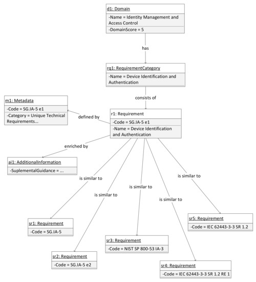 Since the model is the foundation for a better understanding of the security standards aimed at security practitioners in companies that plan compliance implementation, further prioritization of the requirements needs to be defined. There are various techniques for requirements prioritization that are often error-prone, have scalability issues, and lack the social actors’ aspect [60]. Security requirements can also be closely coupled with associated threats and risks. The number of available methodologies for critical infrastructure risk assessment is large [61,62,63]. In many cases, existing methodologies are tailored to the organization’s particular needs and biased to take into consideration only a subset of threats. There are multiple classifications but the most coarse-grained would be qualitative and quantitative approaches. As Cherdantseva et al. in [62] describe, both approaches possess a lot of disadvantages. The quantitative approaches use probabilistic methods where estimation of risk is never complete in the mathematical sense whereas qualitative ones rely on subjective data and numerous simplifying assumptions. The foundation of most of them is the construction of a security risk register where every risk has an owner that is usually someone from the management of the organization. Due to these constraints, the risk assessment component in the model has to be simplified with one goal—to boost the priority of the observed requirement. For every control that is not implemented but is requested through the requirement, there has to be an associated risk that the organization or the system is exposed to.